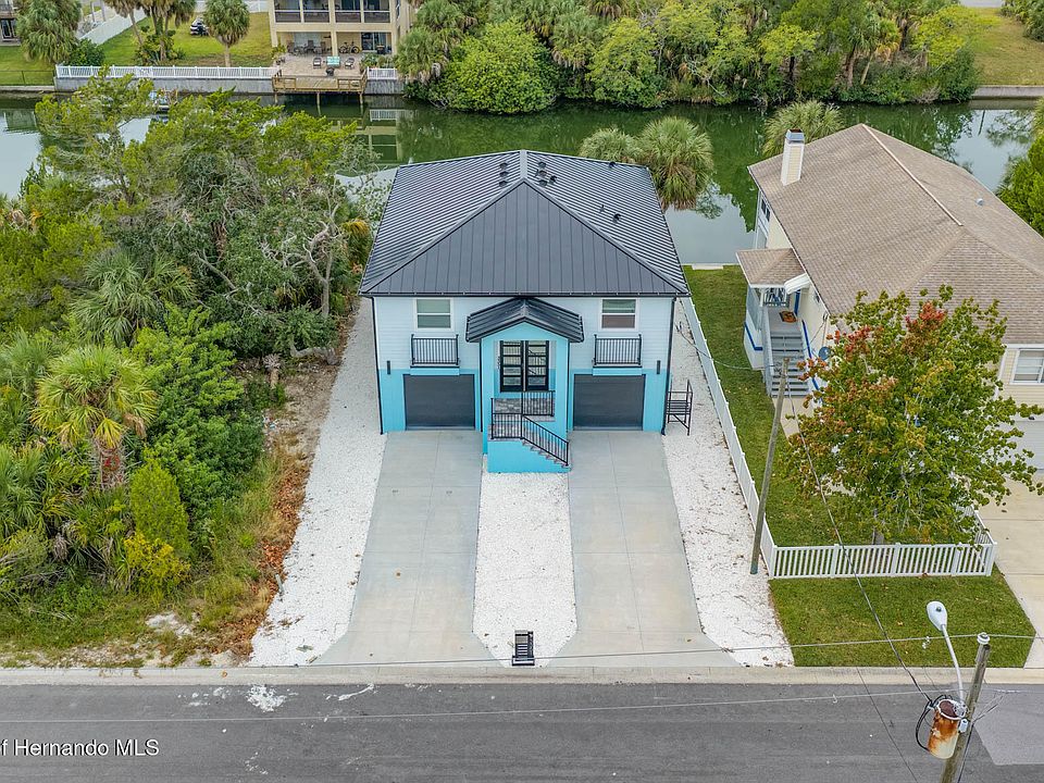 MOVE IN READY, NEW CONSTRUCTION HOME WITH STUNNING WEST WATER VIEWS & BUILDER WARRANTY! Experience the perfect blend of coastal charm and modern elegance in this open-concept 3 bedroom, 2 bath split floor plan home designed for the waterfront lifestyle. Every detail has been thoughtfully upgraded—from luxury vinyl plank floors, impact windows and doors, quartz countertops with a waterfall island, crown moulding, durable Hardie board siding and 26 GA standing steam metal roof. The gourmet kitchen is a showstopper, featuring stainless steel smart appliances, an electric range with hood vent, built-in double oven/microwave, ceiling-height cabinetry, an eat-in island with wine fridge, and gorgeous quartz surfaces. The kitchen flows seamlessly into the bright living room with slider access to the balcony, while the front room serves as a dining area or easily converts to a flex space. The primary suite offers his-and-hers closets, private porch access, and an en-suite bath with a double vanity, backlit mirror, and a glass-enclosed shower. Two oversized guest bedrooms share a stylish bath with a tub/shower combo, raised sink vanity, and light-up mirror. An interior staircase leads to the expansive first level, providing parking for 4+ vehicles, a game room, workshop, or endless possibilities—enhanced by large windows and dual sliders for abundant natural light. Outside, the spacious backyard features a concrete seawall, floating dock, and is xeriscaped for low maintenance. Estimated homeowner's insurance for owner-occupants is just 1,132 dollars per year thanks to its new construction status and this property is eligible for private market flood insurance of 2705 dollars per year. Hernando Beach is a vibrant waterfront community that offers the best of coastal living—boating, kayaking, paddleboarding, fishing, and more. Just minutes from the world-famous Weeki Wachee Springs, residents also enjoy close proximity to shopping, dining, and hospitals. The community is golf cart friendly and allows short-term rentals with no HOA, no deed restrictions, making it perfect for full-time residents, part-time snowbirds, or investors. Only a short trip to Hernando Beach boat lift which offers access to the Gulf . The Suncoast Parkway offers easy commuting to Tampa, Brooksville, and beyond. This is your chance to own a piece of paradise with unlimited potential and jaw-dropping views. Schedule your showing today, move in, relax, and enjoy breathtaking Gulf sunsets right from your own porch! Images of home are virtually staged .