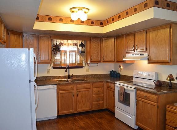 Enjoy this move in ready home w a bright family room, kitchen w/all appliances included and granite counter tops~laundry center~Lovely new flooring~Powder room~Spacious bedrooms w/walk in closets~deck~Lovely edged manicured yard~fencing w/arbor~Shed w/electric~Adjacent to common area~
