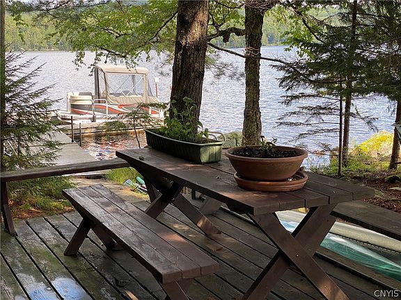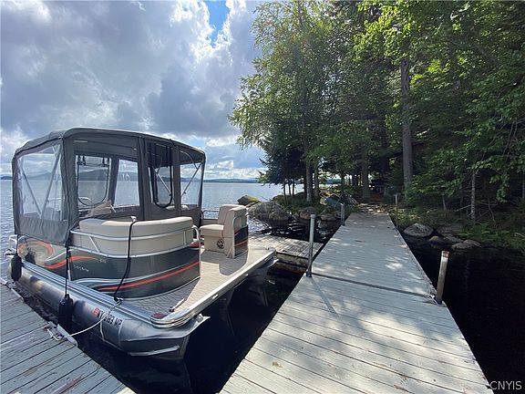 Situated on the shoreline of Green Point at the Northern end of Raquette Lake, this contemporary home has windows across the front for beautiful water views. There is electric, telephone, it has a fireplace in the living room, 3 bedrooms, and 2 baths plus office. A small guest cottage with bath offers more living space. a lean to sits out looking at the water