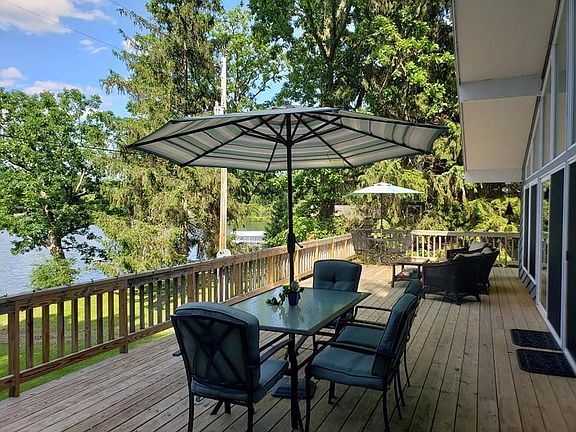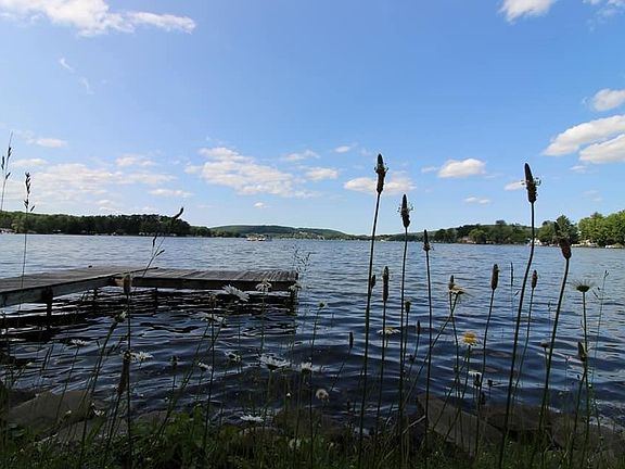 Peace and adventure. Stunning year round lake house with 4.3 acres of land and 110 ft. of gorgeous Lamoka Lake frontage. Newly remodeled house with amazing views. Brand new kitchen, hardwood floors, and carpet in two bedrooms. Use the finished loft as an additional guest quarters. Downstairs, cozy up to the wood fireplace in the family room. Do work in the office. Relaxing owner's suite has walk out doors to the beautifully landscaped flower patio with a newer Jacuzzi. Go for a hike, fish, boat, kayak, hunt, or just sit back and take in all the property's serene beauty.