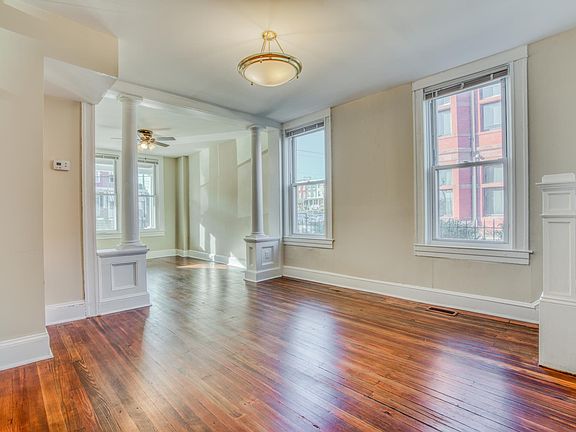 Large, clean and updated 3 bedroom, 1 bathroom, end unit rowhouse for rent in Hampden. Large walk-out basement. Garage for storage. New central heat and A/C. W/D in unit. Fenced grass front yard. Convenient location to The Avenue and Hopkins.