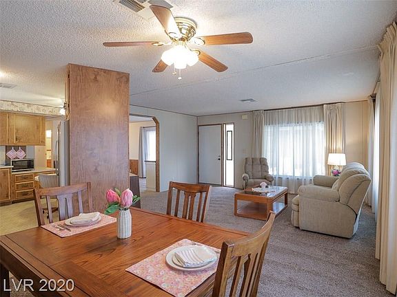 Very clean manufactured home on land (no space fee/lease) in the desirable Monte Del Sol Estates of Laughlin. A well cared for property and owner recently replaced carpet, painted exterior and patio, and worked on the landscaping to make this a perfect home for the next owner. Features kitchen, dining room, living room and family room, two bedrooms, two bathrooms, attached shed/bonus room that could be an office, storage, or other utility space.
