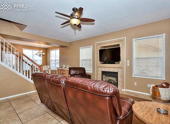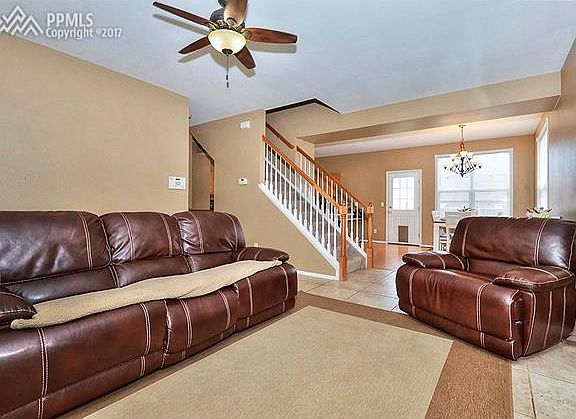 Welcome Home to this Bright and Beautiful Two Story in desirable Soaring Eagles! Lots of windows and cool tile floors greet you in the living room, and transition to wood laminate as you enter the kitchen and dining area. The kitchen boasts granite countertops and a breakfast bar... great for family time or entertaining. Three bedrooms up and a fourth bonus room/bedroom/office in the basement. Step outside to the newly landscaped backyard and enjoy COLD Air conditioning during the warm summer months. (Continued below...) VERY convenient to Ft. Carson, Peterson AFB, Schriever AFB, and the Powers Blvd. corridor. Easy access to I-25 for a commute to Denver.