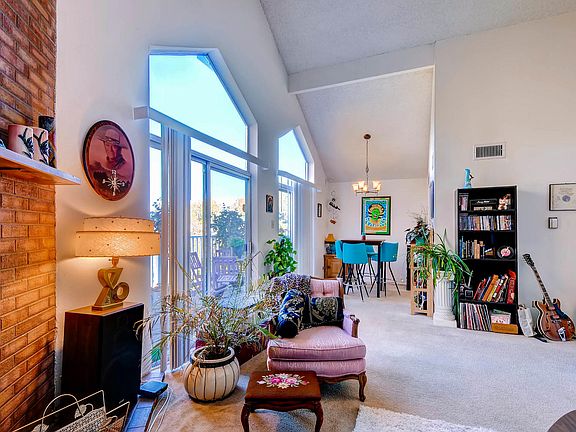 This bright and airy condo is located close to shopping, restaurants, Cherry Creek Reservoir, I-25 and I-225. This home offers tall vaulted ceilings, adding to the bright and airy feel of this home. A cozy brick fireplace makes for a nice focal point in the living room. The vaulted ceilings carry though to a spacious dining area adjacent to the kitchen. All matching appliances, plenty of cabinetry and wood flooring are some of the features the kitchen of this home has to offer. Outside, enjoy warm summer nights on your large deck that faces a nice green courtyard. The bedroom is large, bright and has a walk-in closet. The bathroom of this home offers a shower-tub combination and large vanity with plenty of storage.
