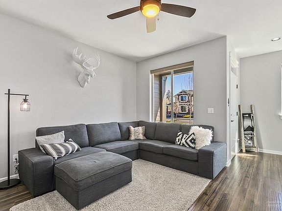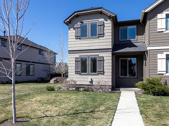 You will love low maintenance living in this beautiful Pahlisch built townhome in the community of Parkland. Natural light pours into the living spaces from the south facing windows. This end unit is surrounded by lawn and birch trees, all maintained by the HOA. This home features stainless steel appliances, laminate flooring, quartz counters with under-mount sinks and A/C to keep you comfortable. Enjoy and entertain in the open main level with cozy fireplace and kitchen with breakfast bar. Upstairs features 3 bedrooms and a loft that would make a great playroom, craft area, or office. The spacious master suite has a walk-in closet and bathroom with dual vanity. Quick access to HWy 97 & Canal Blvd for an easy commute to work in Redmond or Bend. Call your favorite realtor to schedule a showing today!