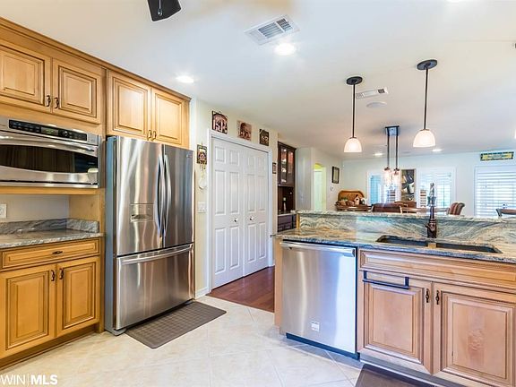 Beautiful and meticulously maintained home with deeded water access to Perdido Bay now available! If you've been looking for a home that has it ALL, your wait is over! Constructed with 2x6 walls, this 2,730 sf home features 4 bedrooms and 2 baths. Upon entering the property, you'll find a newly paved drive and fresh landscaping. Outside, you'll enjoy the fenced backyard, nicely organize workshop with ramp for golf cart and lawn mower and pergola with pavers! Inside you'll love the open concept living, dining and kitchen area, as well as the large sunroom with separate HVAC. Chef's kitchen features Kenmore Pro appliances, pot filler, gorgeous cabinetry and granite, as well as a charming window seat. The butler's bar extends the serving area and sparkles with lit glass cabinetry. The pantry as well as each bedroom closet features built in closet organization, adding a thoughtful touch. The home is wired for surround sound, making it easy to listen for a touchdown no matter where you are! The master sits on the opposite side of the home as the additional bedrooms for ultimate privacy and the master bath is where this home really shines! The large walk-in shower and separate tub are truly a masterpiece and an area of the house you won't want to leave! Don't miss the opportunity to see this one-of-a-kind home.