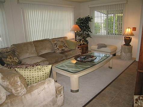 You will absolutely love this gorgeous, updated home located on a large, beautifully landscaped cul-de-sac lot in Tri Palm Estates. This immaculate and exquisitely well done home has a recently painted interior and exterior and offers a renovated kitchen that shines with all new countertops, flooring, sink, faucet and a new stainless steel range hood with extractor fan and lights over a new island with bar stools. Great home for entertaining with a built-in tiled bar, bonus 'add-on' room with freestanding fireplace, spacious, private backyard and welcoming front patio. There is also a completely renovated guest bathroom, large all tile master bath with double sink vanities and step in shower and all new vinyl double glazed windows. Wide driveway with 6 ft. wrought iron double gate, covered carport and large shed with extended garage are just a few more desirable amenities this home has to offer. Golf on 2 courses, swimming pools, Clubhouse and restaurant & bar! Brokered And Advertised By: T P Realty Listing Agent: Robert David Peterson