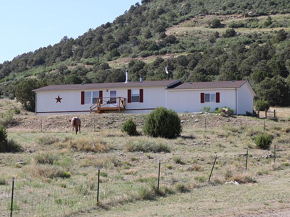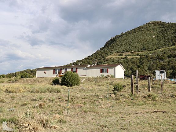 Great little place out in the country on 45 acres. Easy 3 minute access to I-25. Maintained County Road access to property. 3 Bdrm 2 Bath with attached carport; 3 stall Barn and corrals. Steel Roping arena. 1500 gallon cistern with 500 gallon water hauling tank included. Fenced pasture for horses.