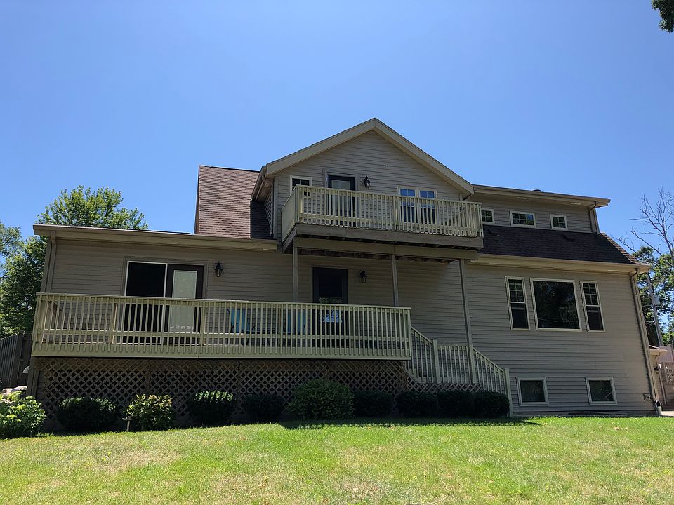 EXTRAORDINARY HOME WITH SERENE LAKE VIEWS, 4 BALCONIES/DECKS FACING BOHNERS LAKE & SEPARATE STUDIO APARTMENT/IN LAW SUITE, PRIVATE LAKE/BEACH ACCESS! Multi level MAIN HOME features 4 BR, 3.5 BA, open concept, vaulted wood plank ceilings, oak hardwood floors, gas fireplace, granite kitchen counters, 7'X4' granite island (seats 6), raised panel cherry cabinets, 6 panel doors. Master en suite boasts vaulted ceiling, balcony, WIC, jetted tub & walk in shower. Loft/4th BR has vaulted ceiling, full BA, WIC and private balcony. LL has large family Rm, 2 BR, 1BA. STUDIO APARTMENT/IN LAW SUITE separate entrance & parking off Fairview ct, full kitchen, full bath,, spacious living area & balcony. 2 Sheds Perfect home for entertaining, lake life w/o lake taxes