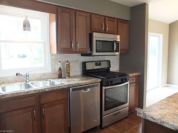 Completely remodeled 3 bedroom, 2 full bath split level on over half an acre! Open concept living room, dining room and kitchen have vaulted ceilings and picture window. Updated kitchen comes applianced with stainless steel dishwasher, gas range, oven and over the range microwave and has an island, breakfast bar, vinyl tile flooring and backsplash. Three good sized bedrooms and full bath with solid surface countertop on the second level. Finished walkout lower level has a full bath and a rec room that would make a great playroom, hobby room or office. 2 car attached garage, too! Large backyard has a nice deck perfect for entertaining! Call today to schedule a private showing!