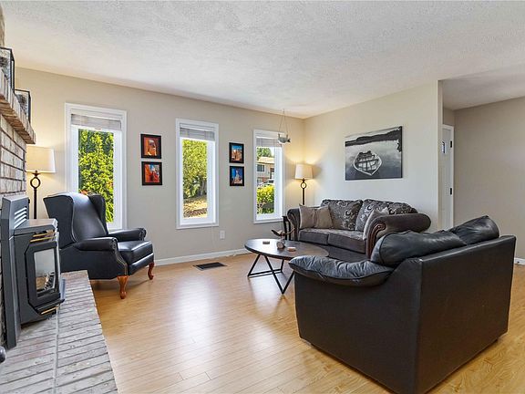 This West coast contemporary home is ready for you to move in ! This home has a wonderful open layout spread over 4 levels. The main level & 2nd level have a variety of generous living spaces, level 3 has the large primary bedroom suite with walk around closet plus ensuite & level 4 has 2 more bedrooms & family bath. The open plan kitchen-eating area & family room complement the more formal living / dining spaces that are on the 1st level. This home offers lots of flexible living spaces for all your needs.There is a nice sun porch off the family room & a very private deck of the dining / living area. There is an enormous crawl space for all your storage that has easy access from inside the house.The front & side yard are easy care & fully fenced with gardens plus another deck for enjoying time outdoors. No back yard to take care of ! There is a good size single garage plus plenty of parking. Just minutes to all amenities schools, shopping, parks restaurants, recreation & more !