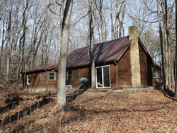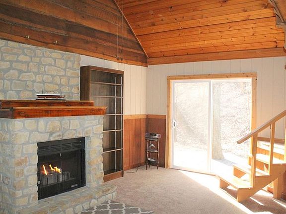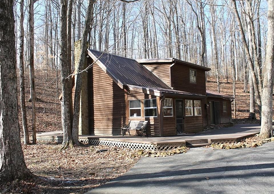 Cute-as-can-be rustic cottage beside a babbling brook. Only 4 miles from Nashville. Fresh interior paint, floor coverings, metal roof 2 years ago. Enclosed front porch accesses living room, sliding door to back open deck. Flip a switch on the wall to start the glow from gas log in Brown County stone fireplace. Charming staircase to loft above. Dining room adjoins kitchen (appliances updated). Brick floored bonus room would be good spot for a small office. Hallway to 2nd entrance. 2 BR, 2 BA.