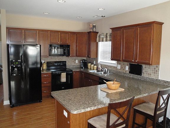 Cozy ranch with plenty of upgrades! Vaulted ceilings, hardwood laminate floors and cottage-style doors welcome you into this 3BR/2BA home. Enjoy the eat-in kitchen which features a breakfast bar, recessed lighting, tile backsplash, Frigidaire Gallery Appliances and custom wainscoting. Living room boasts a wood burning fireplace and an arched picture window for lots of natural light. The three bedrooms are carpeted and the bath & laundry rooms have ceramic tile floors. Master bedroom is complete with a walk-in closet, tray ceilings with accent lights and the master bath has a spacious garden tub. The back yard is ready for your summer barbeque with a covered porch, pergola and stone fire pit. The yard also features a privacy fence making this home perfect for pet owners. This home is heated and cooled with an Energy Star compliant HVAC system.