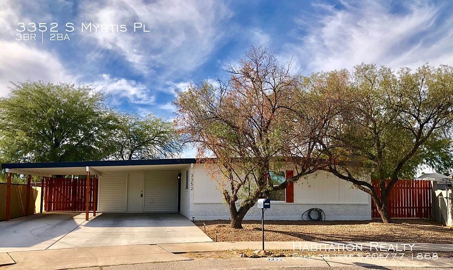 Due to COVID-19, instead of an in-person showing, there is a pre-recorded walk-thru video. Once you apply AND are approved, you may schedule to view this property in-person before proceeding with the leasing process. . The delightful curb appeal continues throughout! This well-maintained, 3 bedroom, 2 bath, ranch-style home situated in a cul-de-sac with ample yard is sure to enchant. A greatroom floorplan greets you. Huge kitchen and large living room with easy yard access. Master bedroom is spacious enough for king-sized bed AND has own bath. Secondary bedrooms fit queen-sized beds. Updated hall bath. Ceiling fans. Recessed lights. Newer double pane windows. Tile in living areas. Carpet in bedrooms. All appliances including washer/dryer. Newer central heat/air conditioning. Yard offers multiple paved zones for added outdoor options. Double gate yard access from 2-car covered carport. Come and make it your next rental home!. $1695 due at lease signing. This includes a $1195 refundable security deposit, $250 non-refundable cleaning fee, and $250 leasing fee. Tenant responsible to set-up and pay all utilities. NO PETS. Renter's insurance a plus and strongly encouraged. No smoking inside nor outside. Application fee $40 per person, must receive applications from all applying for processing, guarantor may be required, all applicants must pass: credit, criminal, and prior eviction screening. Professionally managed by Habitation Realty. Equal Housing Opportunity. 2 Car Carport. Additional Off Street Parking. Carpet. Central Heating. Ceramic Tile. Close To Davis Monthan Base. Cul De Sac. Double Gate Yard Access. Double Kitchen Sink. Dual Pane Windows. En Suite Master Bedroom. Fenced In Yard. Greatroom. Some Window Coverings. Storage Shed
