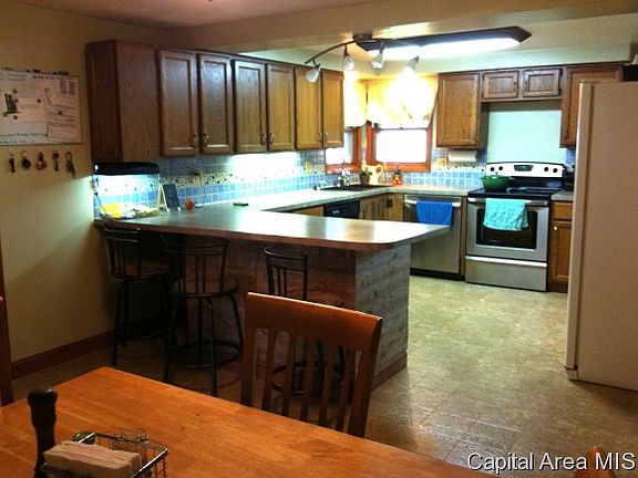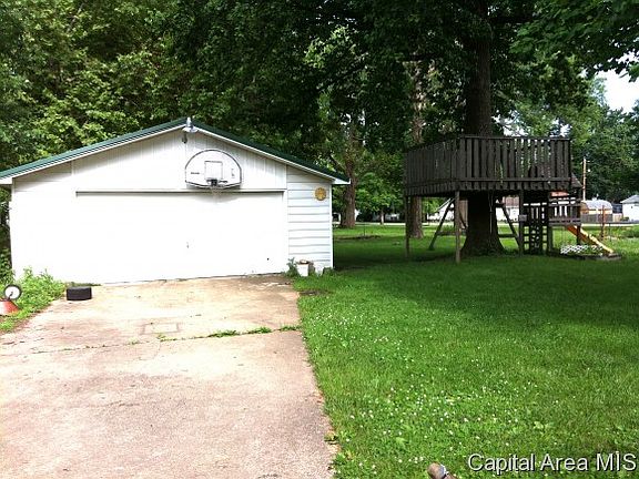 Brick ranch with large yard. Garage space for all kinds of toys. Oversized 1.5 car attached and 24.3x36.5 detached. Hardwood is under carpet. Large kitchen w/ eat-in bar. Covered patio and separate brick one. Large play equipment in a wonderful tree filled lot. SQFT believed accurate but not warranted.