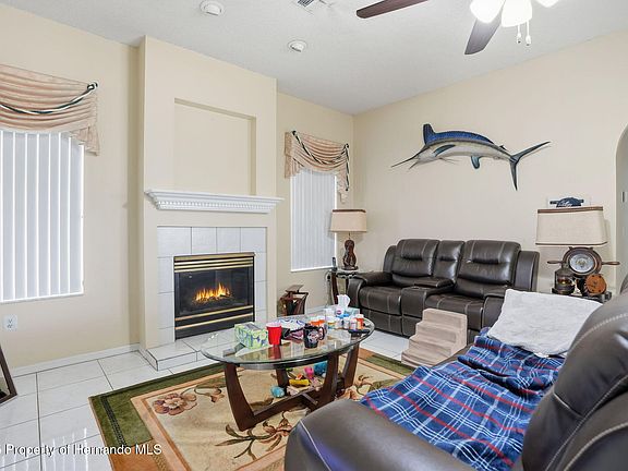 Beautiful 3-bedroom, 2-bath home with a screened, solar-heated pool in the gated community of Pristine Place! The roof and A/C were replaced in 2018. Inside, enjoy high ceilings, spacious rooms, and a cozy propane fireplace. The modern kitchen features solid wood cabinets, granite counter tops (installed 2021), and new appliances. Extras include a multipurpose room, central vacuum, central radio system, and window treatments. Relax on the covered patio overlooking the pool and open backyard. Community amenities include tennis courts, parks, and a large pool. Conveniently located near the Veteran's Expressway, Weeki Wachee Springs, and SunWest Park—this home offers the best of Florida living!