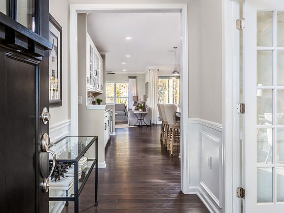 This stunning gourmet kitchen and wet bar feature white painted cabinets with wine racks, glass cabinet doors, granite, stainless appliances a walk-in pantry. Interior finishes include soft gray walls, drop zone and screen porch.