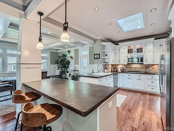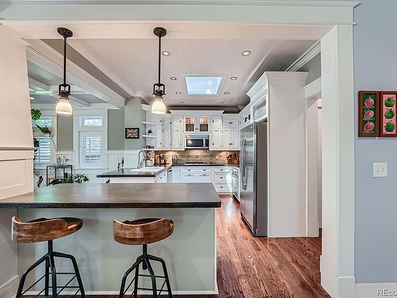 This is the home you’ve been waiting for! Located on the coveted West 30th Avenue, this extremely quiet street is only 2 blocks from the historic Highlands Square. The original bungalow was built in 1896 and extensively re-built in 2011. This spacious Denver home is on a double lot with 4 bedrooms, 4 bathrooms in roughly 3,000 square feet of space and a partially finished basement. The open concept main living area features gleaming hardwood floors, a box beam ceiling, custom built-ins and plantation shutters that exude tons of natural light. The kitchen is home to custom-made cabinets with leaded glass doors, pressed concrete countertops and stainless-steel appliances. There is a main level ensuite with a wood burning fireplace and charming leaded glass accent windows. Upstairs you will find the primary ensuite with a walk-in closet, newly re-tiled glass enclosure shower, clawfoot soaking tub, double vessel sinks and a private roof deck, perfect for your morning coffee. There are two additional bedrooms and a full bath on the upper level as well as the laundry, with a year old washer and dryer. Forced air heating and cooling system has 3 zones, one for every level. Entertain in your large secluded, fenced shady backyard, perfect for summer BBQ’s. Detached two car garage, with additional off-street parking for 2 cars. This is truly a special home and should not be missed.