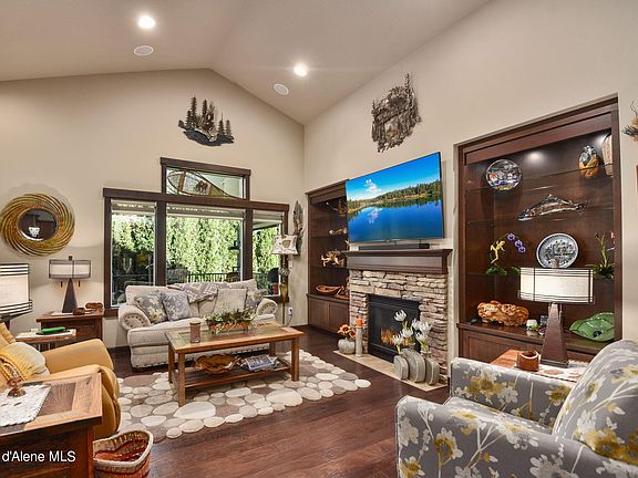 The living is easy in this impressive, generously proportioned Coeur d'Alene residence with interiors thoughtfully arranged into living areas for family and guests: including three bedrooms and two bathrooms, and opulent areas. The floor plan encompasses plenty of room for study, sleep, and entertaining. The sleek and stylish kitchen flows through to the dining room and private rear patio. Step out of your home into lush, manicured lawns professionally landscaped with mature plantings and exterior lighting. This home is ideally positioned to enjoy the proximity to Hayden Lake and Coeur d'Alene, golfing, restaurants, and shopping. Truly a home for all seasons. Located in a gated community.
