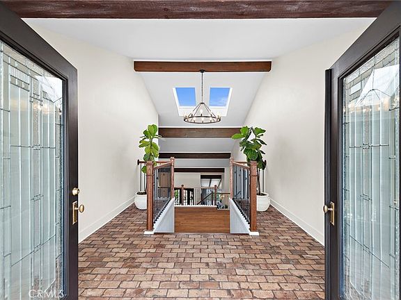 Nestled in the prestigious McCracken Hill of San Juan Capistrano, this exquisite custom built home epitomizes modern Spanish elegance with a cozy and casual ambiance. From its elevated position, the property boasts breathtaking panoramic views, including the shimmering Pacific Ocean, vibrant cityscape, majestic mountains, and stunning sunsets. As you walk through the front door, you are greeted by a grand entrance that immediately captivates with its cozy, modern vibe infused with Spanish influences. The space opens up dramatically as you walk down the staircase that is framed by striking wooden beam accents that complement the soaring high ceilings. Natural light floods in, enhancing the architectural details and creating an inviting, airy atmosphere. The heart of the home is its open-concept kitchen, which seamlessly connects to the living and dining areas, fostering an inviting atmosphere for gatherings and everyday living. Completely renovated, the kitchen is a culinary enthusiast's dream, featuring state-of-the-art appliances, sleek granite countertops, and ample storage. Adjacent to the kitchen, a charming brick fireplace adds a touch of rustic elegance, creating a cozy focal point. The property features solar panels and an expansive private driveway that can accommodate 4 cars in addition to its 3 car garage. The home offers unparalleled access to scenic mountain hiking and equestrian trails, making it a paradise for outdoor enthusiasts. This meticulously restored residence blends modern luxury with timeless charm, offering a perfect retreat with stunning ocean views. This property is an experience beyond description, inviting you to witness its custom charm firsthand.