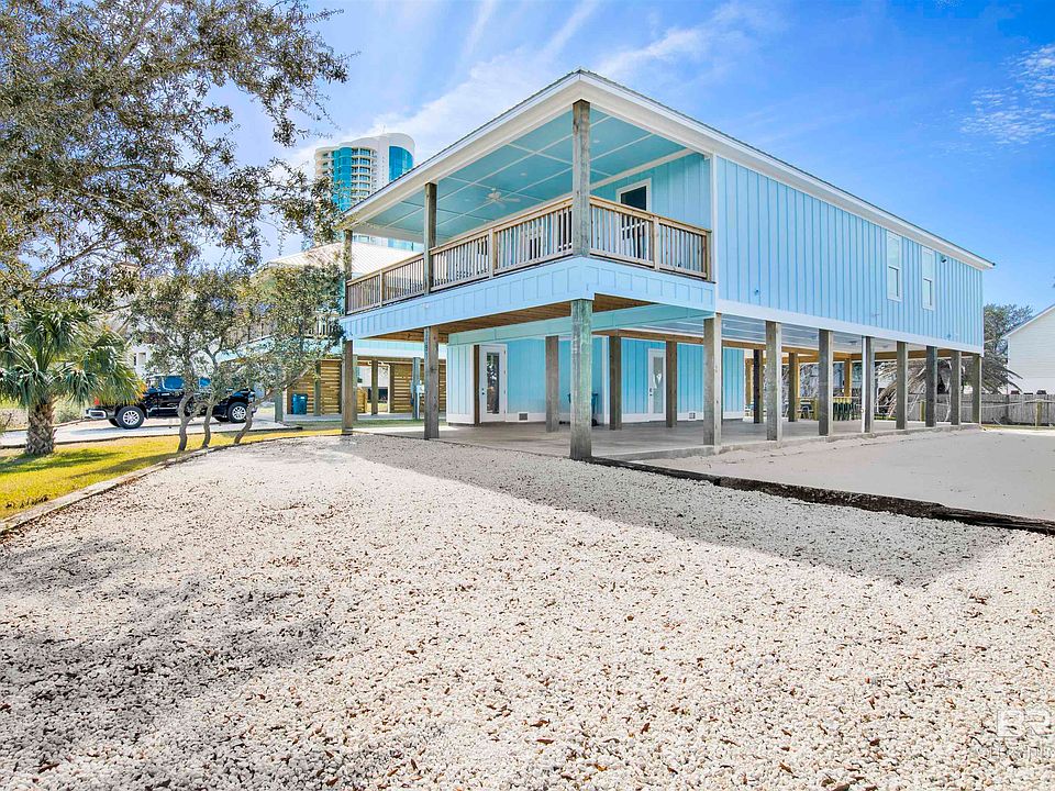 This stunning 4-bedroom, 3.5 bath single-family home is located in the prime rental zone of Orange Beach, perfectly situated between the Gulf and Cotton Bayou off Perdido Beach Blvd. Offering peek-a-boo views of the Bayou with public access at the end of Adams Avenue, this home is designed for comfort and convenience. It features an elevator, a bar with ice maker and wine fridge, and a spacious eat-in kitchen. The layout includes two en-suite bedrooms, providing ample space and privacy. Outdoor living areas include a covered front deck, a downstairs bar area, covered parking and two storage rooms. As part of the purchase price, the seller will build a pool in the large sand area north of the home, or buyers may negotiate a price without this addition. Additionally, the seller owns the neighboring home at 3349 Adams Ave which is also available for purchase, creating an opportunity to acquire one or both properties. Furnishings are negotiable, and the seller may consider financing with 50% down. Buyer to verify all information during due diligence.