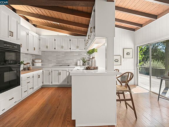 Expansive views of the Lafayette Valley towards Moraga from the family room. All hardwood floor throughout (covered with new carpet in bedrooms). Open beam finished wood ceilings.New carpet 10/24.New quartz countertops 10/24.New Stainless sink and Moen faucet 10/24. New Zelige look tile backsplash installed 10/24.Upgraded all electrical sockets 10/24. New lighting in kitchen (Norseman Electric) 10/24.New GE downdraft glass cooktop 10/24 Affordable Appliance. New GE dishwasher installed 10/24 Letts Plumbing. Handmade custom solid wood cabinets in kitchen. Newer dual pane windows.New bath vanity and faucet. All new paint 10/24.Front patio installed 2006 for afternoon wine and cheese parties.Easy care front and back lawns.Backyard features trails and planting areas waiting for your TLC. Zoned for Coveted Lafayette School district and #10 rated Campolindo High School