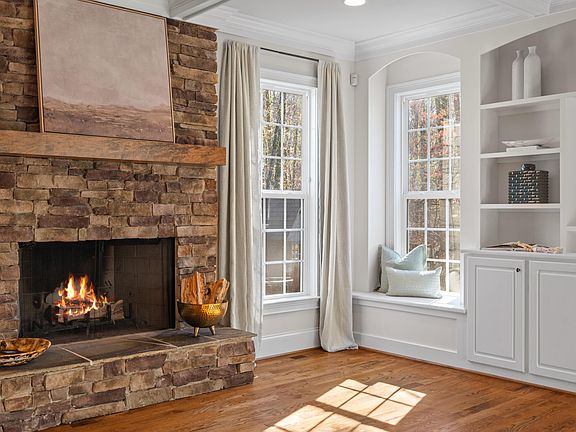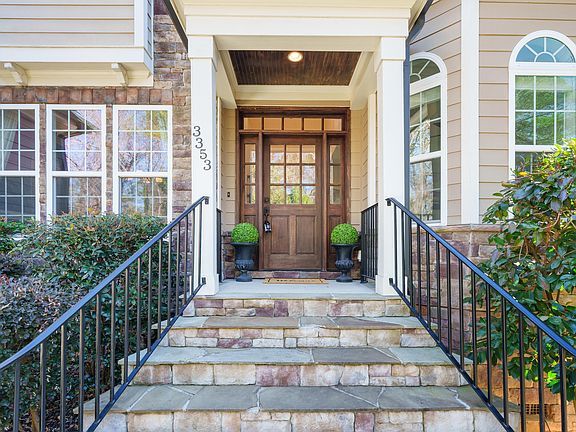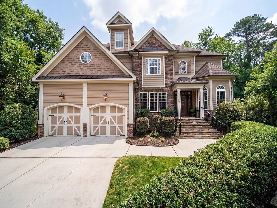 Situated on a rare 0.75-acre lot at the end of a cul-de-sac in a private, no-HOA neighborhood, this exceptional Midtown ITB home offers the perfect balance of serenity and proximity to city amenities, just minutes from North Hills, Downtown, and nearby country clubs. Designed for everyday living and entertaining, the open-concept floor plan flows effortlessly and includes a first-floor guest suite. The second floor includes a spacious primary suite and three additional bedrooms (with one bedroom wired to be a media room), plus a finished third-floor space with full bathroom offering exceptional flexibility. Ample storage is integrated throughout, including extra closets beneath the staircase, built-in bench seating with storage, and additional attic space tucked behind a third-floor accent wall. The expansive backyard provides a wood-burning fire pit and room to relax. The neighborhood's charming bridge over Big Branch Creek enhances the peaceful setting, while future plans for the Big Branch Creek Greenway connector close by will create walkable access to North Hills, The Exchange, and multiple greenway trails. Nearby Carolina, North Ridge, and North Hills Country Clubs provide golf, tennis, and pool amenities just minutes away. Rarely does a home combine this level of space and connectivity, this is an exceptional opportunity in one of Raleigh's most desirable Inside-the-Beltline locations.