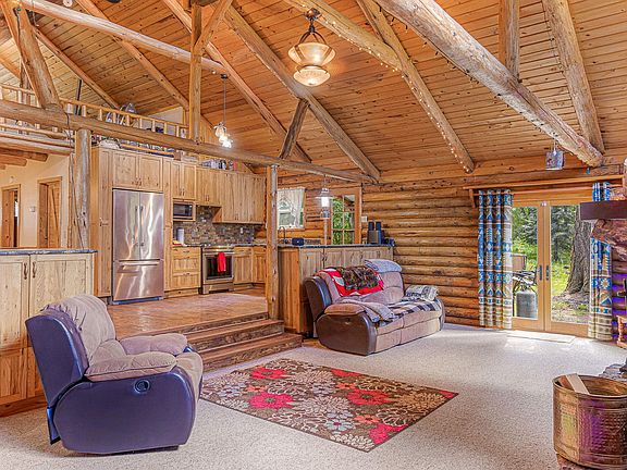 Step into the fresh air with this luscious, five acre horse property! Everywhere you turn, there are a vast amount of trees to greet you and your horses to the peaceful ambiance of the home and the land. Upon entry you will notice the detailed cathedral ceilings, laminate floors, and open living room that shines bright with the natural light from outside. The gourmet kitchen boasts a gas stove , granite counter tops, oak cupboards, and more storage than you will need. It has a pull out pantry tucked away giving you maximum space. This three bedroom, one bathroom luxury home also offers just as many features outside as it does inside! You now own a large horse pasture, shed, and barn to protect your animals from the outside weather. A tack room where you can store all your horse necessities. Be sure to set up a showing today before this rarity gets swept away!