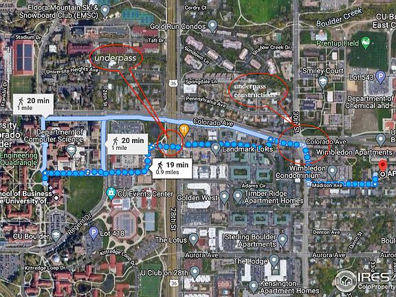With upcoming underpass to cross 30th St., this location and Townhouse style condo is ideal for CU students. Less than 1 mile to main CU campus and 1/2 mile to East campus. Park in front of your condo and walk into the open living space. Enjoy the private back patio for some additional Vitamin D. Upstairs you will find 2 bedrooms with expansive closets and a well -designed full bathroom. Peak-a-boo mountain view from west facing bedroom. 2021 Jeld-Wen windows, sliding door, refrigerator and laminate flooring throughout first floor. Laundry room is 2 doors down from property or install (allowed) a stackable washer/dryer in closet next to kitchen. Two pools in the complex, tennis courts and easy commute to campus. Seller intends to perform an IRC Section 1031 tax-deferred exchange.