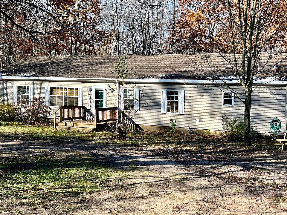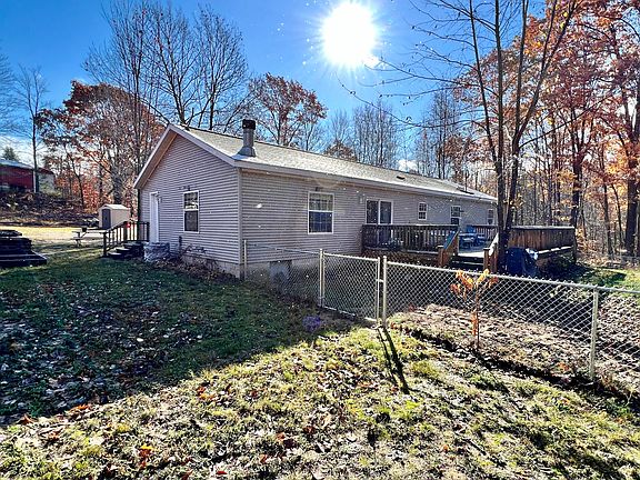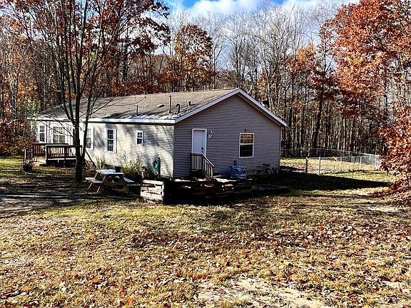 Located between Lake City and Manton on 2.25 acres you will find this spacious 1848 sq ft home. The home features a sprawling kitchen and two separate living room areas, one with a wood burning fireplace. The primary bedroom is spacious and has a private bath and laundry combined. There are two more bedrooms and a mudroom with a separate entrance. The entire home has solid surface flooring. The back deck overlooks a fenced yard and beautiful rolling hardwood forest. There is a concrete slab in place that would make a great spot to add a garage.