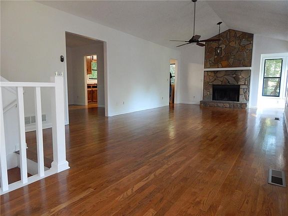 Move in ready home in quiet community. A vaulted family room ceiling gives the home a large open feel with gas fireplace. Beautiful hardwood floors. Separate dinning room. Fresh interior and exterior paint. All new interior doors and fixtures. Roof replaced (2011). Large master and 2 additional bedrooms upstairs. Enormous possibilities in finished basement includes great room, bedroom, full bath, and extra room for office or exercise room. Over sized garage with lots of storage. .5 mile away from schools and 1 mile away from Kennesaw's best park: Swift Cantrell Park.