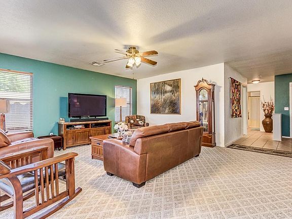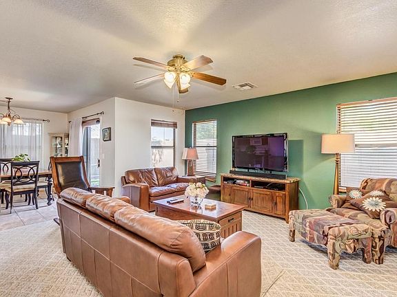 Stunning single level home on corner lot! Custom color palette and flooring flowing throughout. Eat in kitchen is complete with a plethora of cabinets, center island, and white appliances. Master suite has ceiling fan and picture windows. 3/4 ensuite with extended single sink vanity. Spacious walk in closet! Backyard features a patio surrounded by lush green grass, mature tree, and plenty of room for entertaining. This home is sure to go fast, so come see it today!