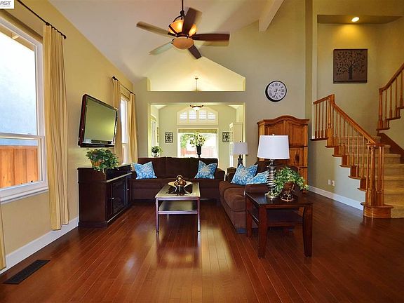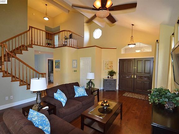 Desirable CA Place home w full bed/bath downstairs. Grand entry w 14ft ceilings & Hrdwd flrs. eat-in Granite kitchen w gas stove, SS appliances & tile floor. Carrera marble master bath w dual vanity & custom tile shower. Lovely backyrd w solar heated pool & retractable cover. walk to Meadows prk