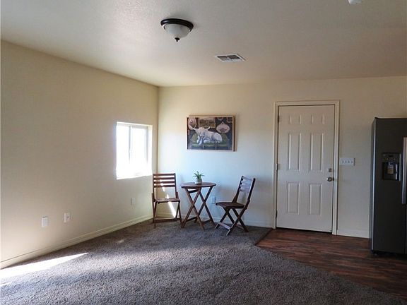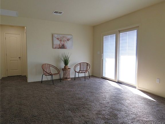 Camo Cutie, This three year old home has two bedrooms, both with walk in closets and one full bathroom. Good sized living room, dining combination with a slider out to the front of the home, kitchen has hickory cabinets, electric range, microwave, refrigerator. This home is all electric, with water from So-Hi Water District. There s a large laundry room with washer & dryer, home has central heat & air and lots of windows. A 10 X 12 storage building with built in work benches sits behind the home on this .96 acre lot, property backs up to State Trust Land and has beautiful panoramic views. 3353 W. Castle Springs Rd. ~ So-Hi ~ Golden Valley AZ, about 8 miles from the Visitor s Center in downtown Kingman AZ.