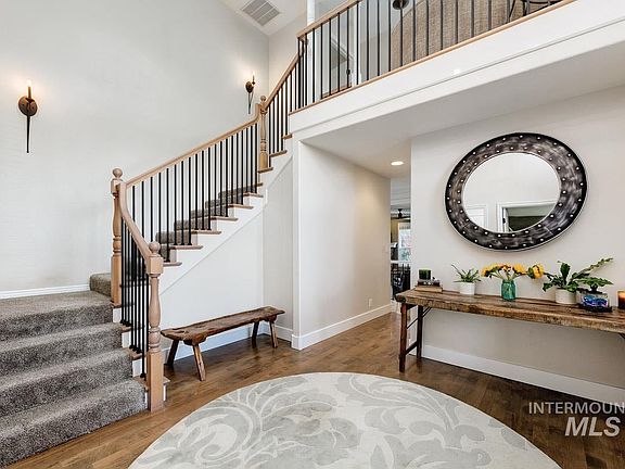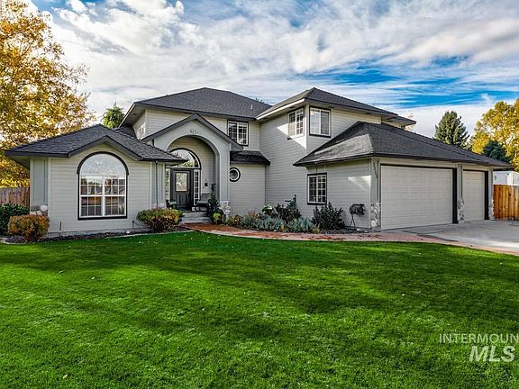 Modern comfort meets timeless design in the heart of Meridian, ID. This beautifully crafted home features spacious living areas flooded with natural light, enhanced by high ceilings and refined finishes throughout. The gourmet kitchen boasts stainless steel appliances, granite countertops, and a large island—perfect for culinary creations or casual gatherings. The primary suite is a sanctuary of relaxation with a luxurious en-suite bathroom. Step outside to a large, mature backyard designed for ultimate enjoyment, featuring a cozy firepit gathering area, an oversized storage shed/shop, generous garden space, and a dedicated dog run—all with plenty of room for friends and family. Located near top-rated schools, parks, and vibrant shopping and dining options, this home combines convenience with a warm, inviting atmosphere. Experience the best of Idaho living in this stunning property!