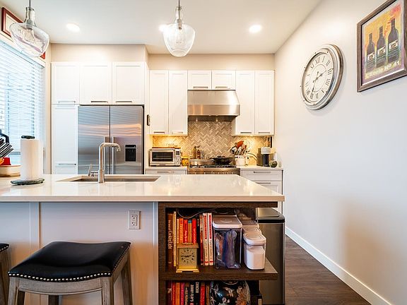 A luxury unit in the sought after building " The Residences at Gateway". This immaculate unit features 1 bedroom plus a flex room perfect for a home office. Boasting modern lighting and designer finishes throughout. The gourmet kitchen offers quartz countertops, a marble backsplash, Fisher Paykel fridge, Bertazzoni gas stove, Bosh dishwasher & convection oven plus a built in pantry. The master bedroom features a fully customized walk in closet and a spa-like ensuite, heated flooring & an additional upgraded shower head. Enjoy gorgeous views on your private patio upgraded with full patio screens. Includes 1 storage locker and 1 parking space. Lightly used as a seasonal residence. Furniture is also available for purchase. Complete with upgrades valued at $20,000, this unit won't last!