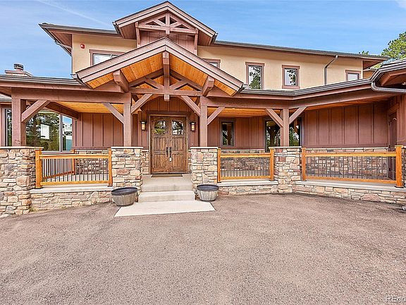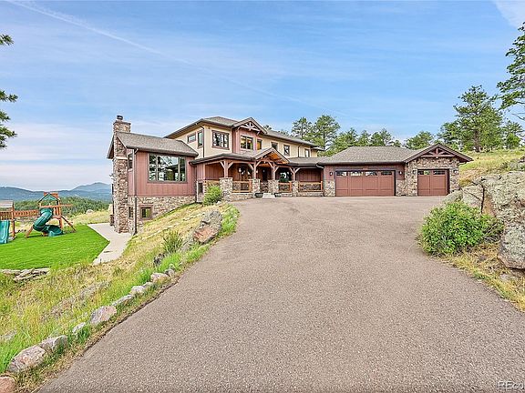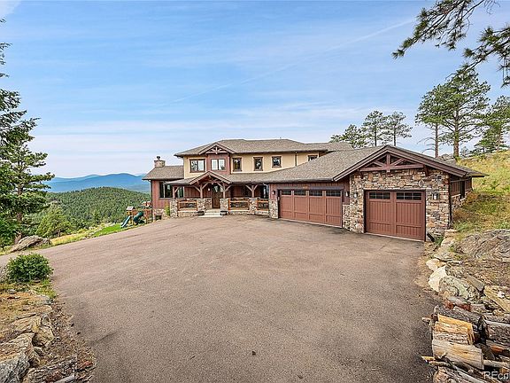 Prepare to be amazed! This stunning 5-bed, 4.5-bath residence, now available for sale, offers both elegance and tranquility. From the moment you arrive, you’ll be captivated by the home’s striking facade with elegant stone accents, a spacious 3-car garage, and a charming front porch. Nestled in a serene setting, this custom home offers a sense of privacy and peace, making it a true sanctuary. Inside, the generous living area features elegant wood flooring, vaulted ceilings with exposed beams, and a cozy fireplace. 8-foot premium solid doors add a touch of luxury throughout. The family room is perfect for relaxation and gatherings. The kitchen boasts 42" wood cabinets, granite countertops, and a stylish tile backsplash, equipped with all the built-in appliances needed for culinary adventures. The serene primary bedroom offers plush carpeting and private balcony access. The ensuite bathroom provides a spa-like retreat with a separate tub and shower, while the spacious walk-in closet ensures ample storage. For peace of mind, the home includes a state-of-the-art fire suppressant system. The backyard is designed for relaxation and entertainment with low-maintenance artificial turf, a patio off the walk-out basement, and a deck to enjoy breathtaking mountain views. This property is a haven for those seeking a retreat with unparalleled vistas and comfort. Conveniently located near Highway 285, this home provides easy access to Colorado’s premier recreation destinations. It’s just 45 minutes to Denver and 90 minutes to ski resorts. What are you waiting for? This remarkable home, offering privacy, serene living, luxurious features, and enhanced safety, won’t last long—act now to make it yours!