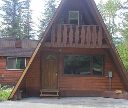 A-Frame Cottage on a private lane off of Nash Rd. 3 bed 1.75 bath house features laminate floors, built-in fireplace, small balcony overlooking the front yard, nearly 1500 sq ft! Large .92 acre yard includes small tree house, basketball hoop w/cement pad, old horse stable, and a large additional project cabin in the woods with an outhouse.Beautiful private yard/great sun! Additionally nearby trails go back to the mud flats and tidal zone where you can fish for salmon and go duck hunting - just walking out your back door.