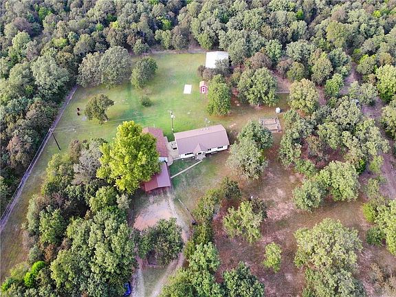 This well kept 10 acres has darling remodeled frame home with metal roof. All new appliances include washer and dryer, stove and oven and fridge. New Central/Heat&Air, new carport. New roof on detached garage. New hot water tank, new well pressure tank. New paint throughout. Wood look ceramic tile throughout. Very open plan. All new tilt out windows by Window World. Oversized detached garage for implements and vehicles. Goat pens, chicken coupe and all cross fenced for any 4 legged livestock. Automatic gate opens to good gravel driveway up to house.