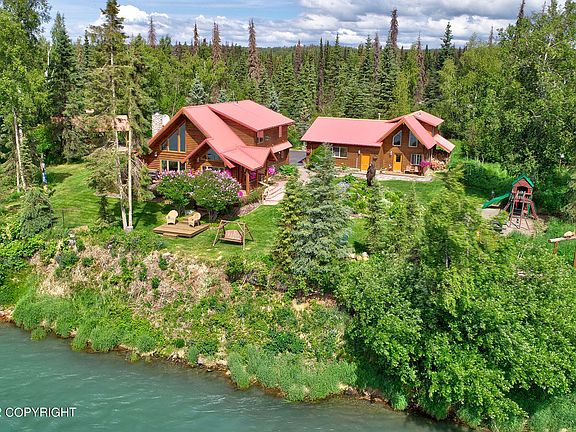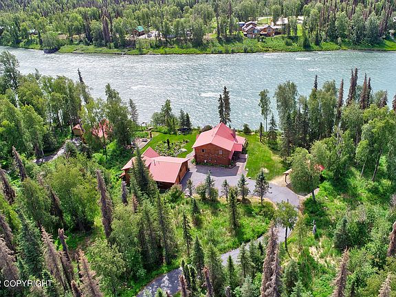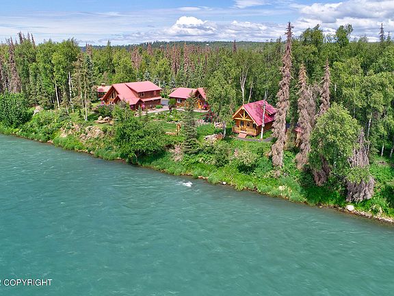 Opportunity of a lifetime! Own the most fabulous, fully furnished turn-key home on the Kenai River. Over 360' of frontage, a second log home, plus a third residence make a great place for entertaining. High-end appliances, granite & details everywhere add luxury to the Alaskan charm. Paved driveways, a custom log boat-port, 3-car garage, 700+ SF of decks and landscaping with sprinkler/drip system.