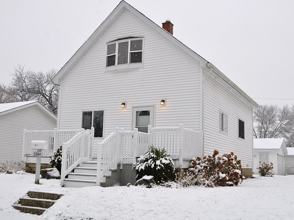 This 1.5 story bungalow does not look its age of 78 years! Bright white newer siding & trim installed in '15, large yard w/patio, newer garage. Bilco doors from the yard to basement. Freshly painted interior, new carpet & laminate floor. Roof & some windows '07. Master has WI closet, bay window, skylights, ceiling fan. Front & rear entry doors have been replaced. Living & dining rooms also have ceiling fans. 2nd bedroom is on the main level. THE BASEMENT STAIRCASE IS NOT TRADITIONAL. EACH STEP HOLDS 1 FOOT AT A TIME. GOING UP & DOWN IS MUCH LIKE USING A LADDER. SELLER HAD THE STAIRCASE INSPECTED & WAS TOLD IT WOULD BE GRANDFATHERED BECAUSE IT IS REBUILT IN THE ORIGINAL FOOTPRINT OF THE PREVIOUS STAIRCASE. USE CAUTION & HAND RAIL. Agents my want to bring a flashlight.