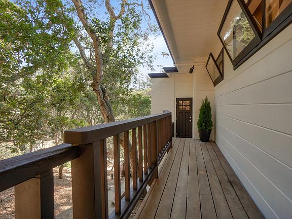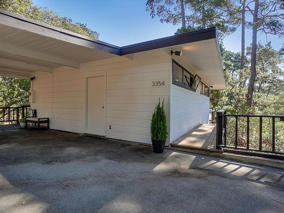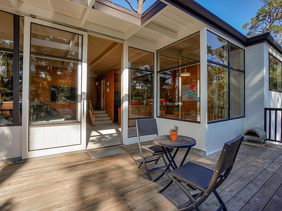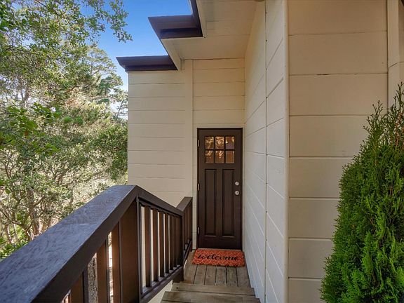Welcome to Mare e Foresta, a wonderful mid century modern remodel opportunity nestled amongst the trees of the Mission Trail Park just west of Hatton Fields. The expansive lot and great orientation offers solitude and tranquility, yet its conveniently located with an easy walk to the beach and restaurants downtown. The private back deck offers spectacular views of the forest, and great indoor/outdoor entertaining with the open floor plan and gas start wood burner. Three bedrooms, two full bathrooms with eleven-foot ceilings and stunning wooded views make this a very rare offering in the Carmel Unified School District. Freshly updated with contemporary exterior paint. Move-in-ready and waiting for your finishing touches.