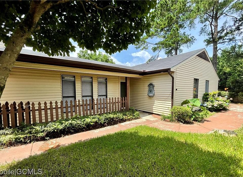 LOOKING FOR A PATIO HOME WITH A PRIVATE SETTING? MAKE PLANS TO SEE THIS RARE 3 BEDROOM FIND IN DANDALE WOODS. Freshly painted inside & move in ready! Open floorplan with 19' 2" x 16' 7" living & dining combo area featuring brick fireplace w/ full wall of built-in bookcases. Kitchen w/ newly painted cabinets + space for several counter stools. Master suite features vaulted ceiling, 2 closets & updated bathroom area. French doors lead to a 13'' x 13" enclosed patio with window unit. Note: this area is not included in square footage of home but could be converted into an office or sitting room. Both bathroom tub/shower surround areas have been renovated by Re-Bath. Ceramic tile, wood & laminate wood flooring throughout. Laundry room with plenty of cabinets for storage + hall linen closet. Oversized 20' x 22' double bricked carport with 2 exterior storage closets! Convenient location to schools, shopping, restaurants + easy access to I-10 & I-65. Home is located just off Girby Rd. - East of Knollwood Dr. Call today to schedule a tour. This home will not last long! All updates per the seller. Listing company makes no representation as to accuracy of square footage; buyer to verify.