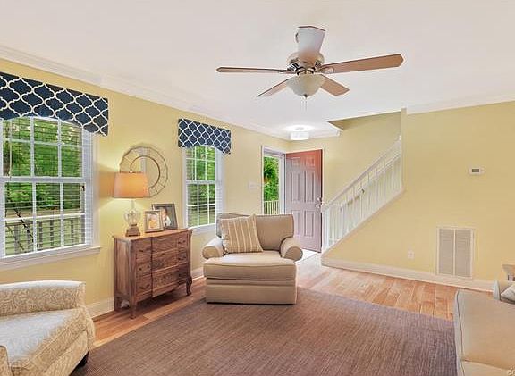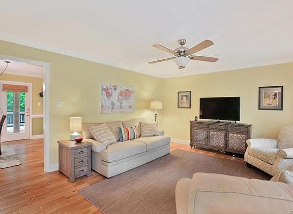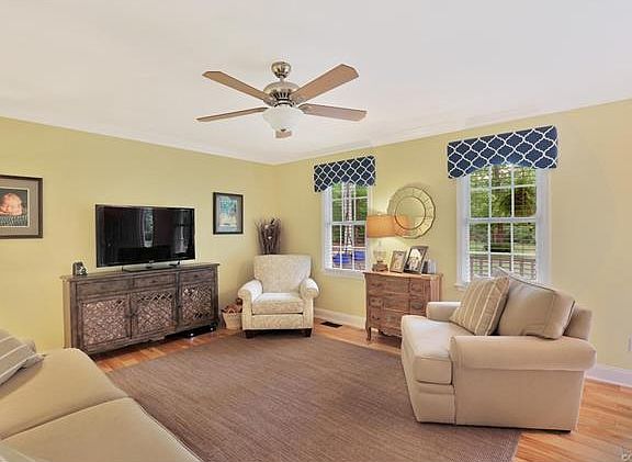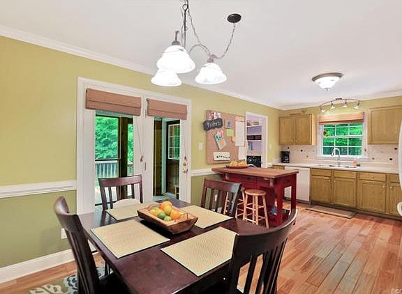 Welcome HOME! This meticulously maintained cape displays the love and care of its proud homeowners. When entering the home your eyes are immediately drawn to the beautiful birch floors used throughout the first floor. The living room with crown moulding, ceiling fan, and cornice boards is a perfect size for entertaining. The living room flows into the kitchen which is great for family and social gatherings.The kitchen is bright and cheery with crown moulding, chair rail, updated light and plumbing fixtures, tile back splash, and an atrium door opening to the cozy screen porch. The kitchen extends into the mud/laundry room which offers open shelving for storage. The master suite with crown moulding completes the first floor. The renovated master bath is beautiful w/ new vanity,counter top, tiled floor and surround. Upstairs are two large bedrooms and a full bath. The bedrooms have ceiling fans and eave storage. The 2+ acre lot offers privacy and beautiful landscaping. Add to these features a new heat pump (2014),water filtration system, and detached workshop w/ porch and one has a great place to call HOME!.