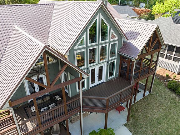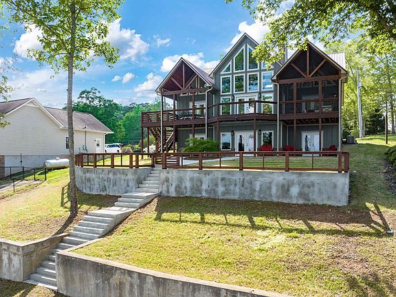 An entertainer’s dream, this place is perfect for your large gatherings! 5 bed 4.5 bath main house, 3 fireplaces, 2 kitchens, 2 laundry areas, 3200sf barn w/ office and 1 bed/1.5 baths, & year-round water! The great room has 24’ vaulted ceilings, floor to ceiling rock fireplace, and wood accents. The large windows in each room focus on lake views and natural light. The master features 16’ ceilings, access to the screened porch, walk-in closet, and a master bath with a huge shower. The main level boasts 3 bedrooms, 2.5 baths, & laundry room. The lower level has additional 2 beds, 2 baths, open living space with another full kitchen, fireplace, laundry, and access to the lower patio. This place was built with low maintenance in mind with Hardi siding, metal roof, and synthetic decking. One of the lower-level bedrooms is quite large and could serve as a bunkroom or additional master with en-suite bath. Agent owned, buyer to verify items of importance.