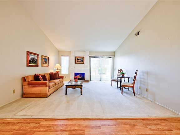 Good condition single level 3 bedroom, 2 bathroom home in the Spinmaker Point neighborhood of East Carlsbad on a cul-de-sac. Light and bright with open floor plan. Vaulted ceilings. Formal living room with view and fireplace. Separate dining area. Kitchen has eating area with open den area. Master suite with own bathroom and view. Kitchen has plenty of cabinets and granite counter tops. 3 car garage with entrance into the kitchen. In front, three parking spaces. Back yard is spacious with patio and view.
