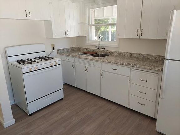Newly renovated mid century modern, 1 Bedroom, 1 BR free-standing house with front, side, and back yard. New floors, kitchen counters and paint. Bathroom includes vintage tile with stand-in shower. In-home washer/dryer hook-up. Large yard includes mature trees. Carport and yard parking for 2 vehicles. Storage shed (approximately 8 x 5) available in back yard area. Convenient family market located directly across the street, which features an excellent Mexican food restaurant. 6 month lease agreement switching to month-to-month. Water and trash is included in monthly rent. Tenant pays for all other utilities. Cats OK - but no other pets unless service animal certified. Unit is on a private well, so there is no watering of yard, or planting landscaping or gardens that require water usage.