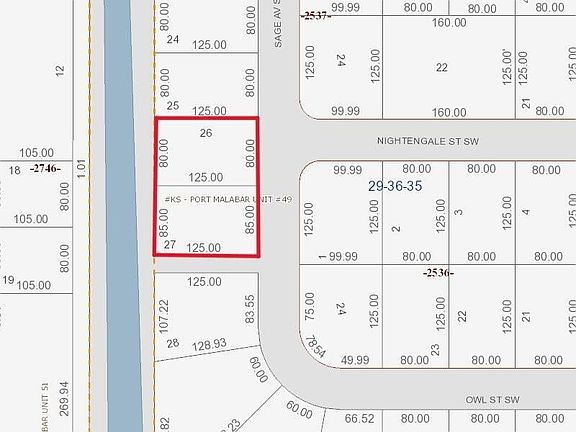 THIS LOVELY DOUBLE LOT BACKS TO A CANAL WITH ANOTHER SMALL CANAL ON THE SOUTH SIDE PROVIDING LOTS OF PRIVACY! FROM THE AERIAL PHOTO, IT APPEARS THERE IS A POWER WIRE RUNNING IN FRONT OF THE LOT. THIS NEEDS TO BE VERIFIED. THE AREA HAS A COUNTRY FEEL BUT IS JUST 7 MINUTES FROM THE BEAUTIFUL BAYSIDE LAKES DISTRICT, FEATURING A PUBLIX, DUNKIN', WALGREENS, TASTY EATERIES, MEDICAL SERVICES, AND MORE! BAYSIDE HIGH AND WESTSIDE ELEMENTARY SCHOOLS ARE A SHORT 5-MINUTE COMMUTE. THE NEW SOUTH I-95 INTERCHANGE IS 10 MINUTES AWAY, AND THE BUSY MALABAR ROAD CORRIDOR IS LESS THAN 15 MINUTES, OFFERING A LONG LIST OF STORES, RESTAURANTS, AND EVERYDAY CONVENIENCES. THIS SITE UTILIZES WELL WATER AND SEPTIC.