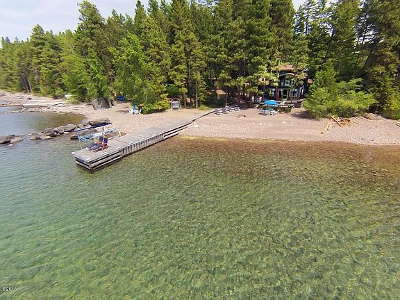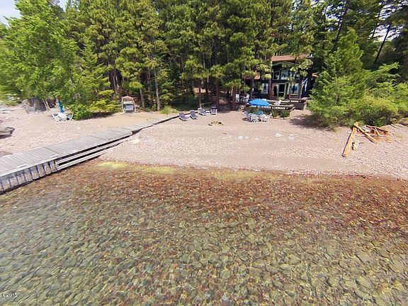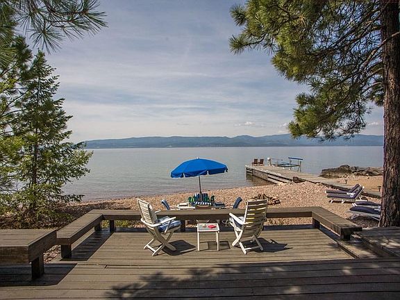 Flathead Lake lifestyle awaits you! A rare opportunity to own a 3 bed, 2 bath home minutes to Bigfork on 96' of level, pebble beach. Recently remodeled: river rock fireplace, natural gas appliances and furnace, travertine tile bathroom, granite countertop in kitchen, hardwood floors, shore station with lift, expansive decking to enjoy spectacular 180 degree sunsets! Owner financing possible.