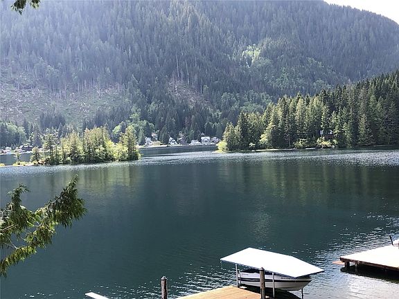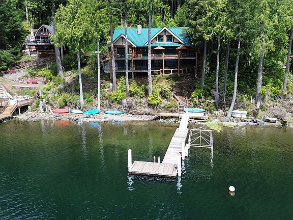 Stunning Lake Cavanaugh log home with 120' of lakefront and panoramic views of the islands and glaciers. This home offers the perfect blend of luxury, comfort & natural beauty. Newly rebuilt dock with boat lift. Kitchen with walk-pantry, new propane cooktop/oven/fan. Living room has huge rock fireplace, french doors that open to party size deck for entertaining. Main floor primary with newly added 3/4 bath, remodeled 3/4 bath to accommodate guests. Upper level has 2 fully furnished rooms that offer versatility as extra sleeping, office, game room. Lower level has second bedroom with full bath, large rec room with sleeping space, more storage and 600+ bottle wine cellar. Furnished and move in ready for the summer. Detached 1 car garage.
